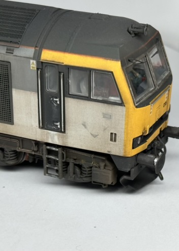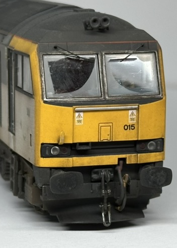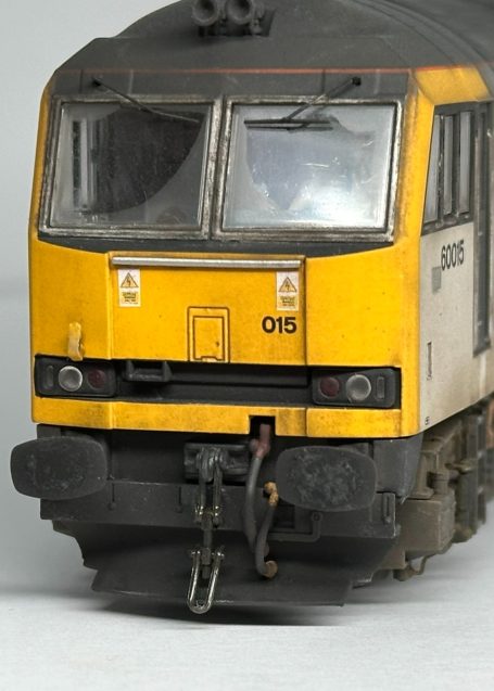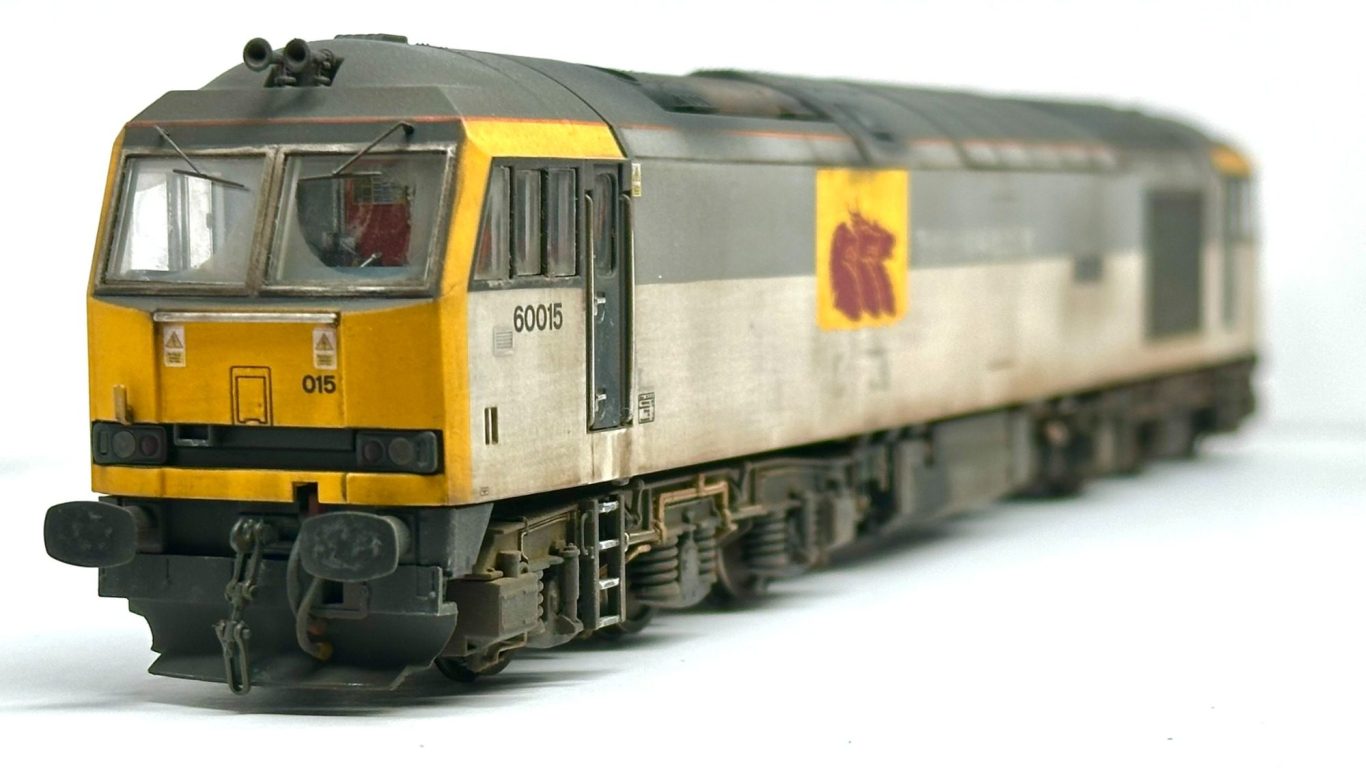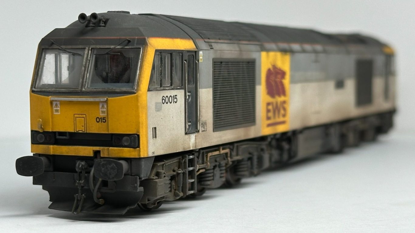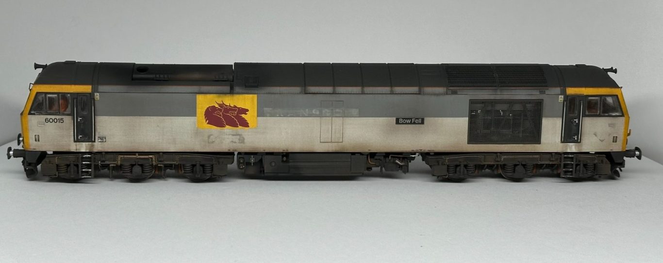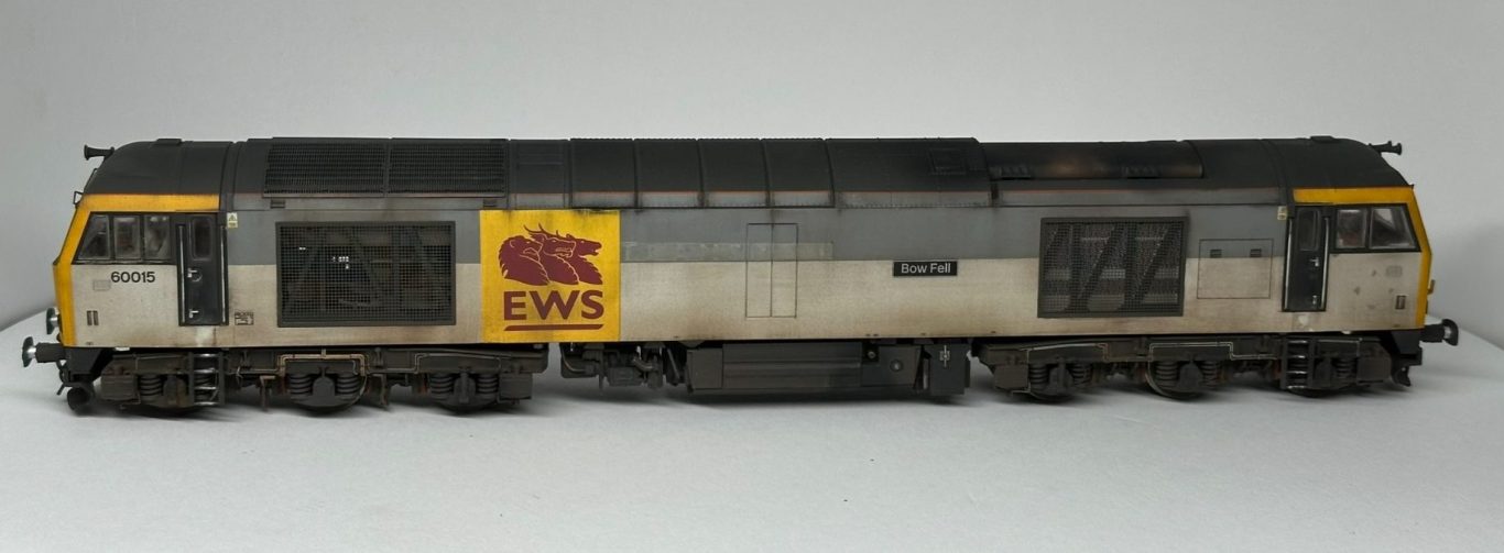Accurascale OO Gauge Class 60 - Reworked from the origional 015, but with a new FULL set of transfers. 60015 Bow Fell has been represented during its EWS 'Bestie' guise with its torn vinyls on one side. The loco is factory fitted sound, which has had the small sugar cube speaker removed and the sound file altered for a better sound experiance. The cabs have been populated with Modelu crew and cab detailing.